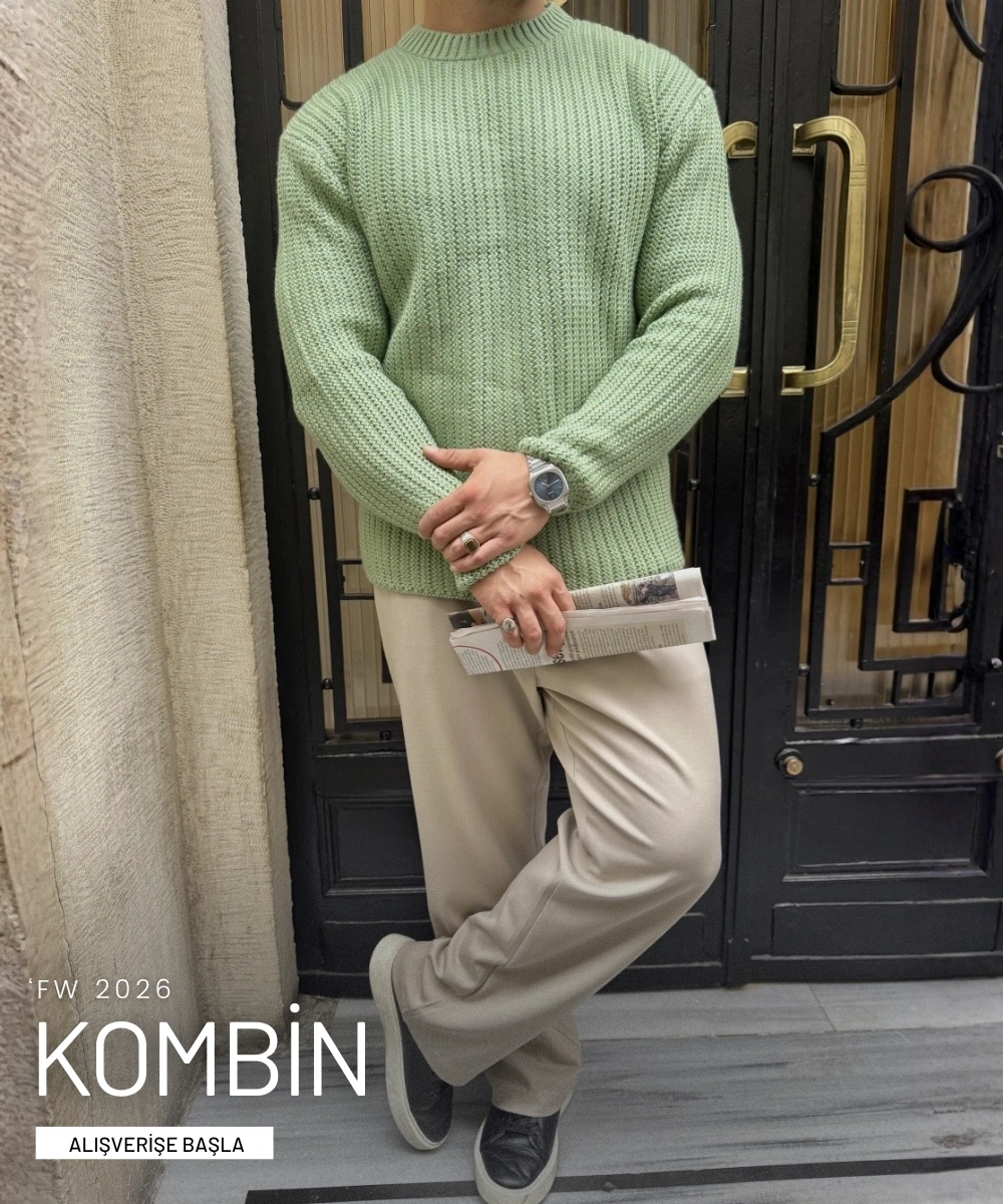 Selanik Örme Gömlek Yaka Sweat Nefti Yeşil