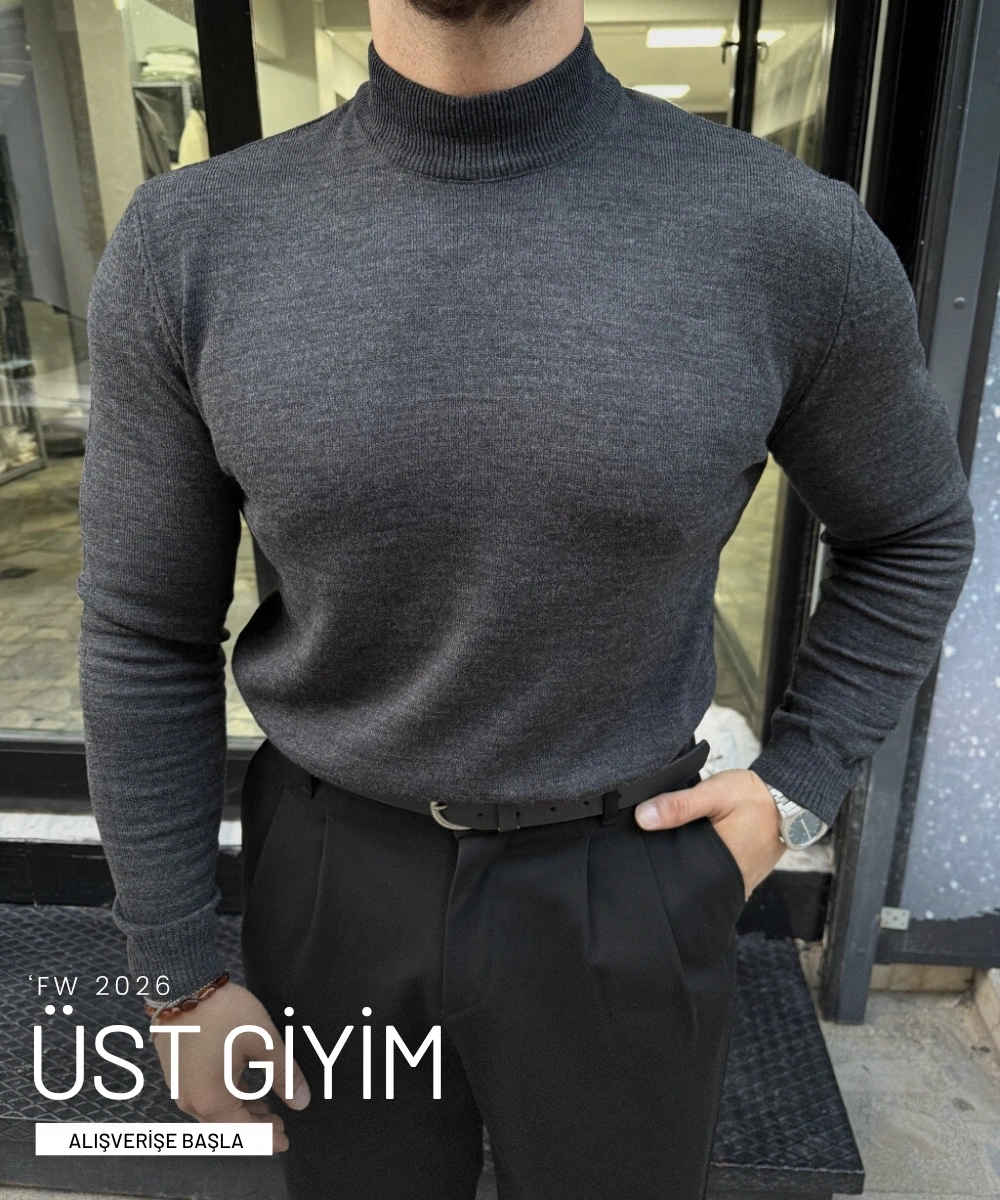 Selanik Örme Gömlek Yaka Sweat Vizon
