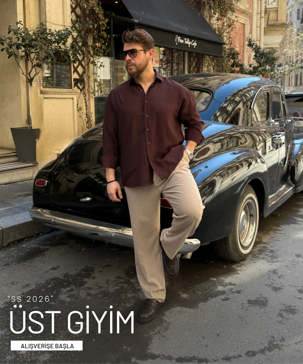 KAHVERENGİ MODAL ÇİZGİLİ GÖMLEK