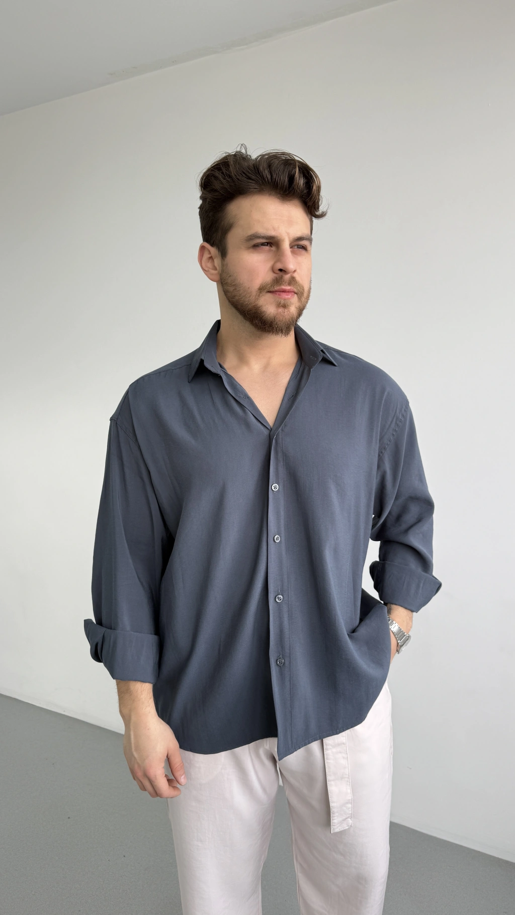 ANTRASİT GRİ MODAL KUMAŞ GÖMLEK