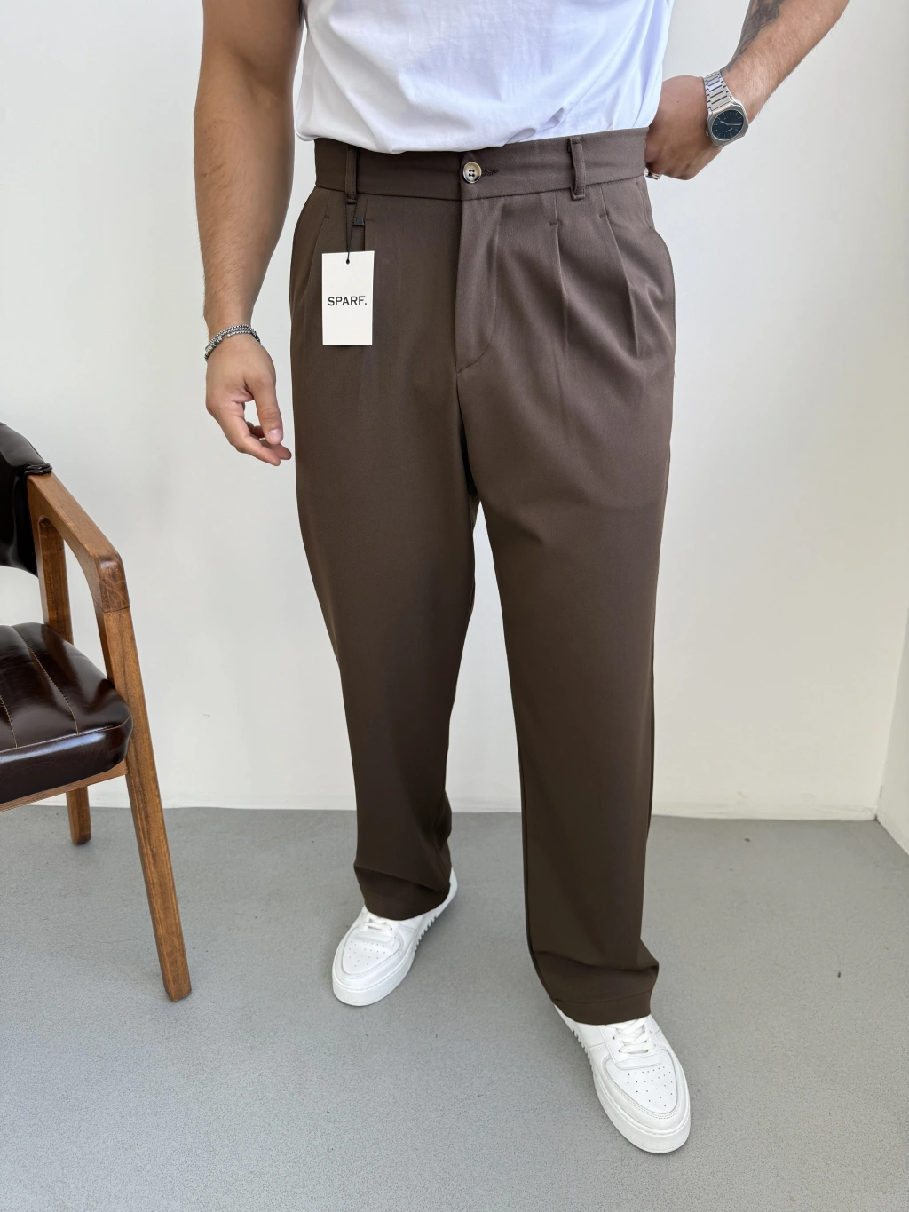 Baggy Kalıp Kışlık Kumaş Pantolon Acı Kahve