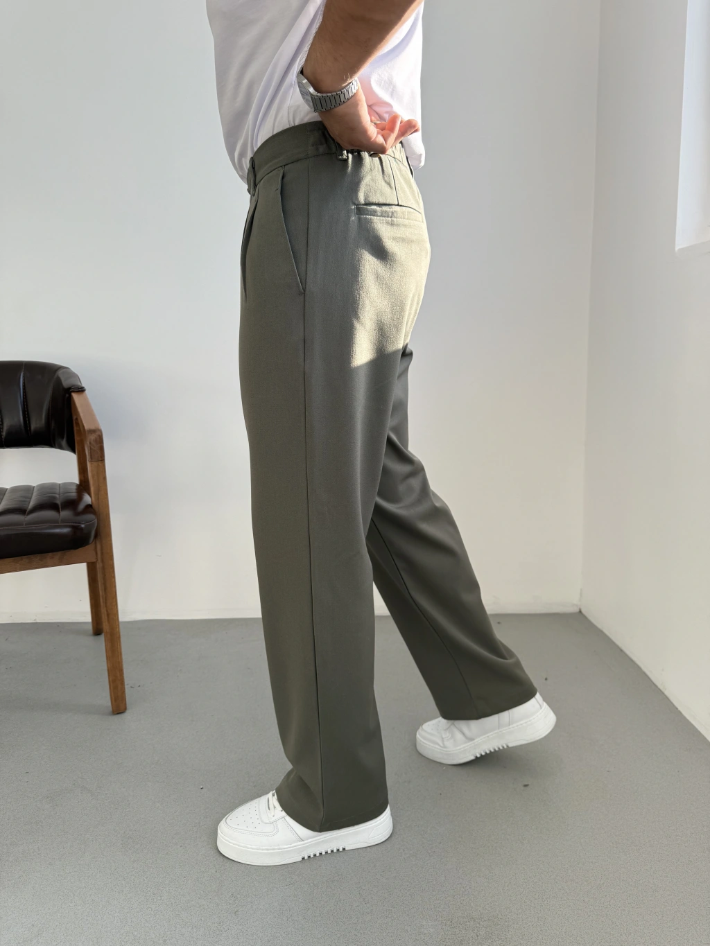 Baggy Kalıp Kışlık Kumaş Pantolon Haki Yeşil