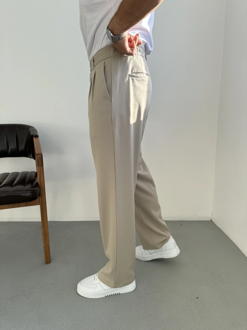 Baggy Kalıp Kışlık Kumaş Pantolon Krem