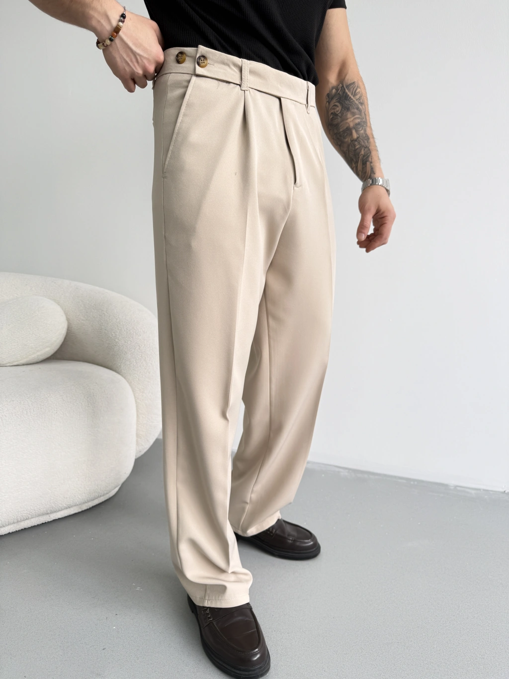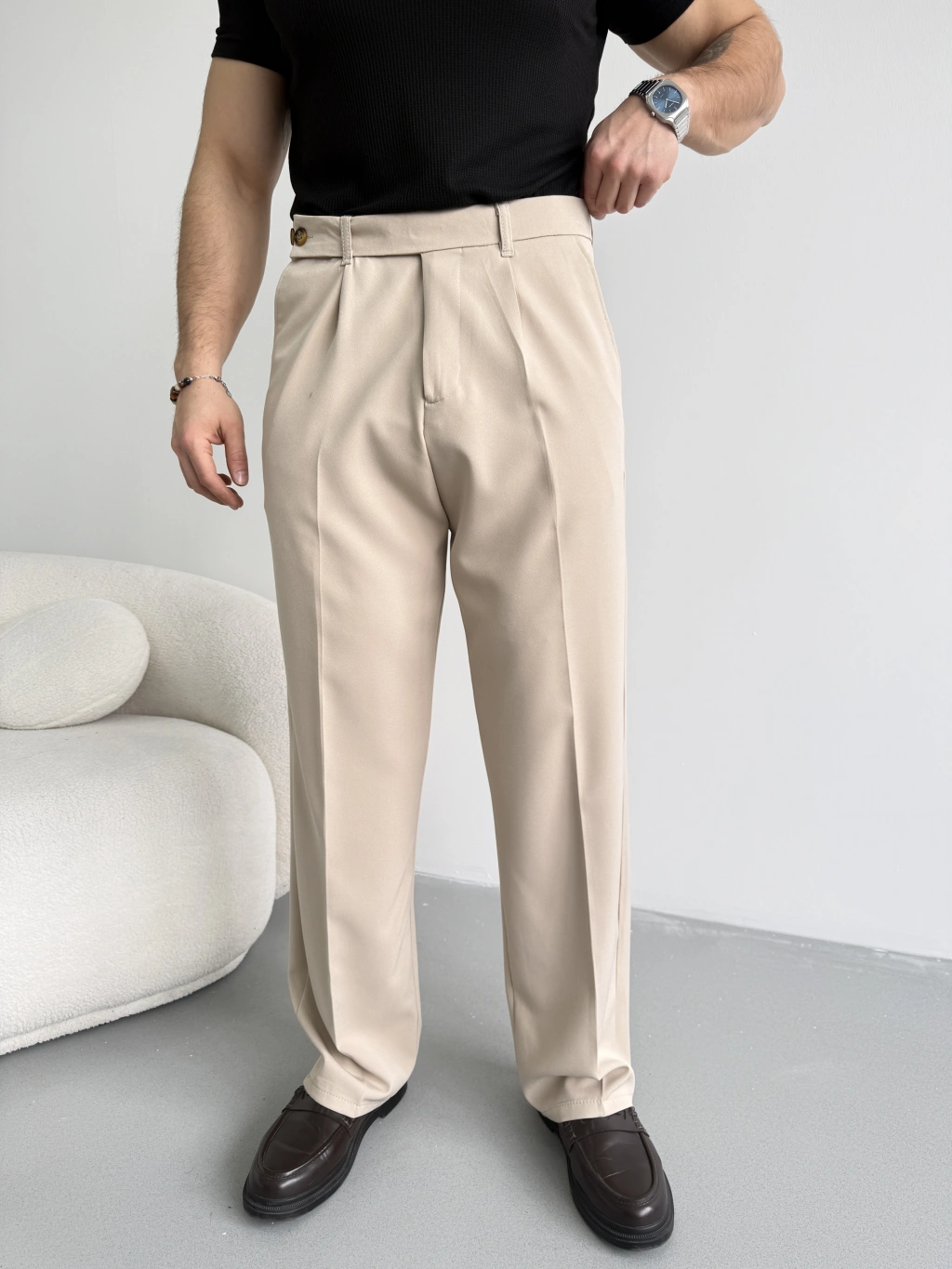 BEJ UZUN KEMERLİ BAGGY KALIP KUMAŞ PANTOLON