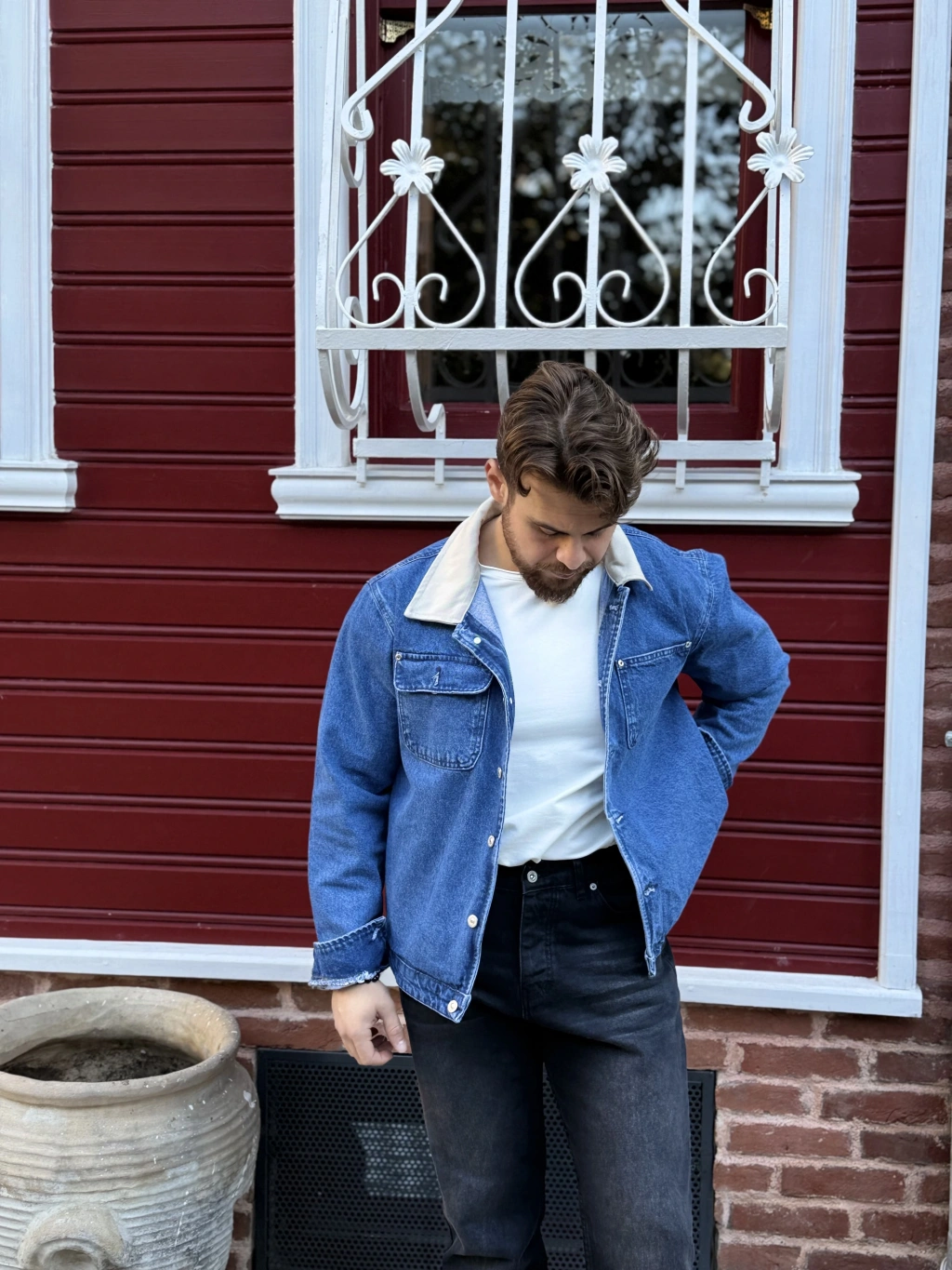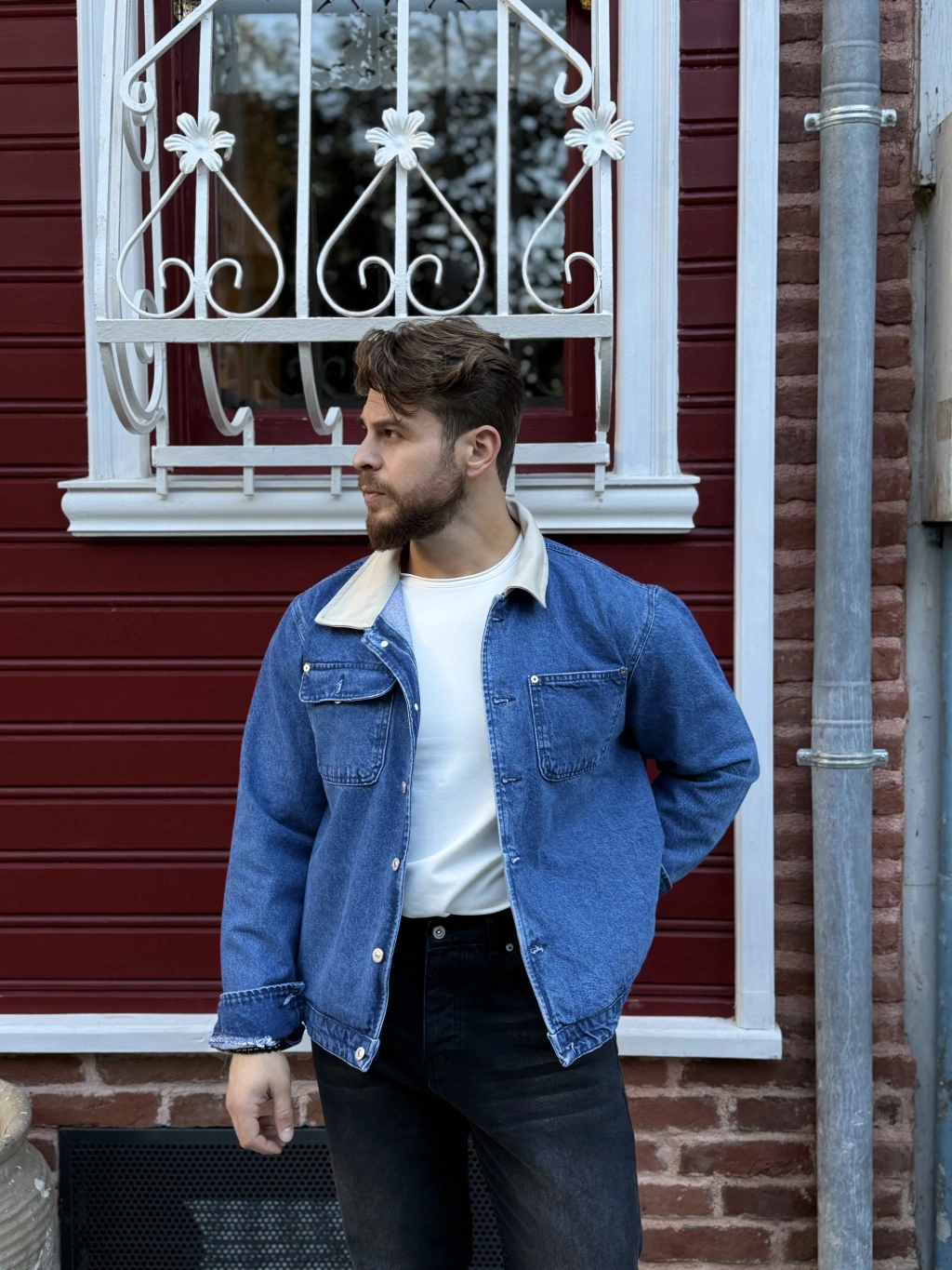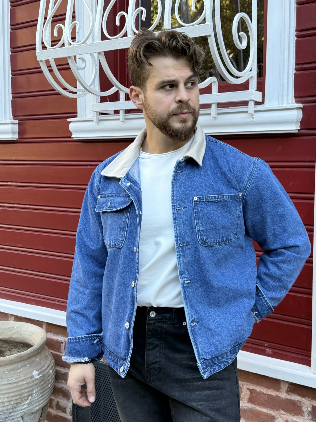 Bej Yakalı Kot Ceket