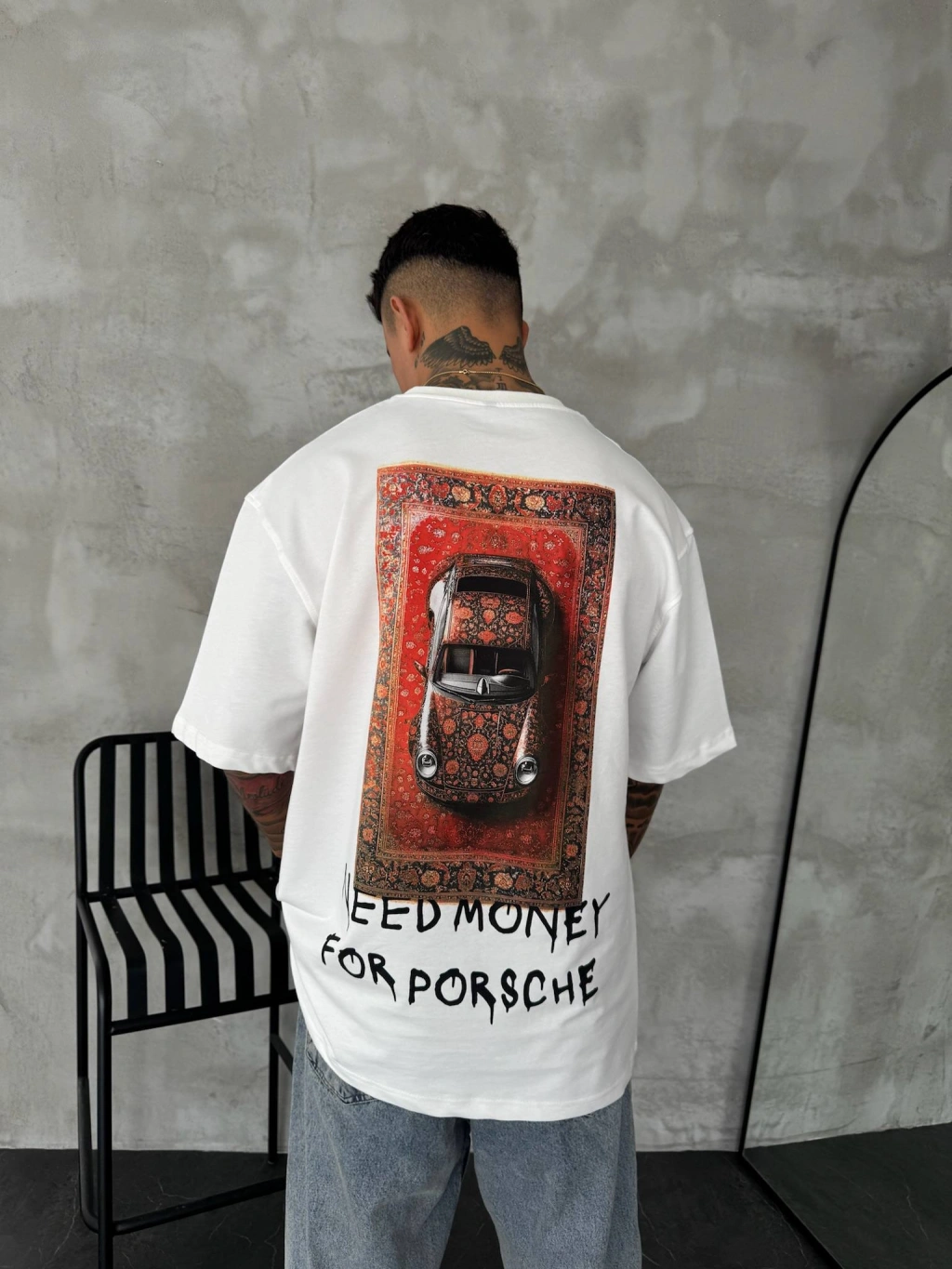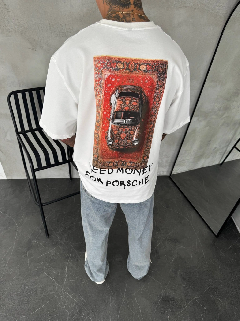 BEYAZ OVERSİZE KALIP PORSCHE TİŞÖRT
