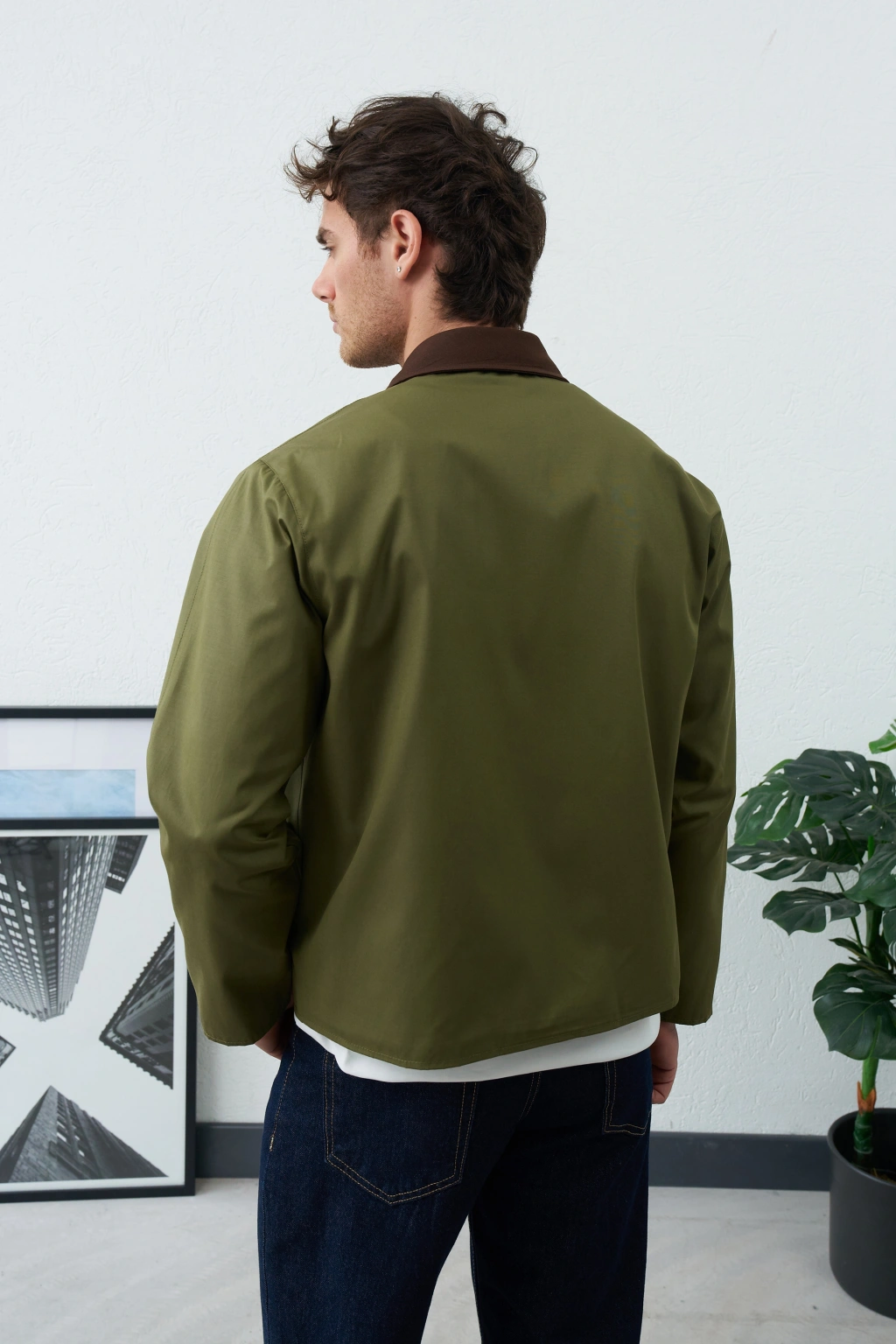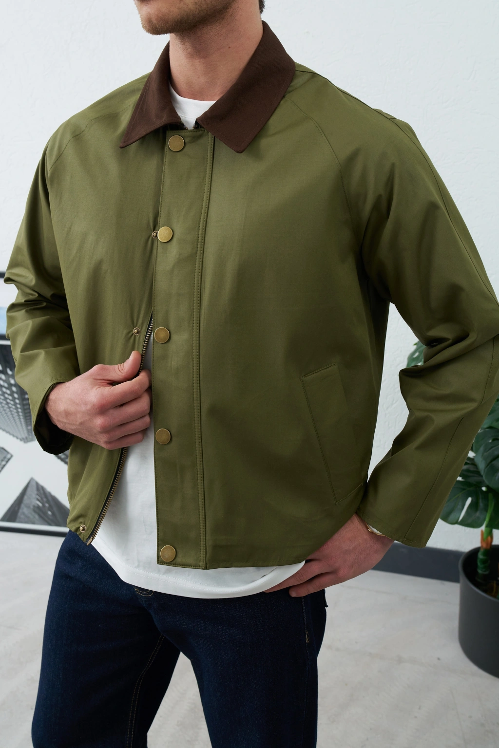 HAKİ YEŞİL KADİFE YAKA MEVSİMLİK CEKET