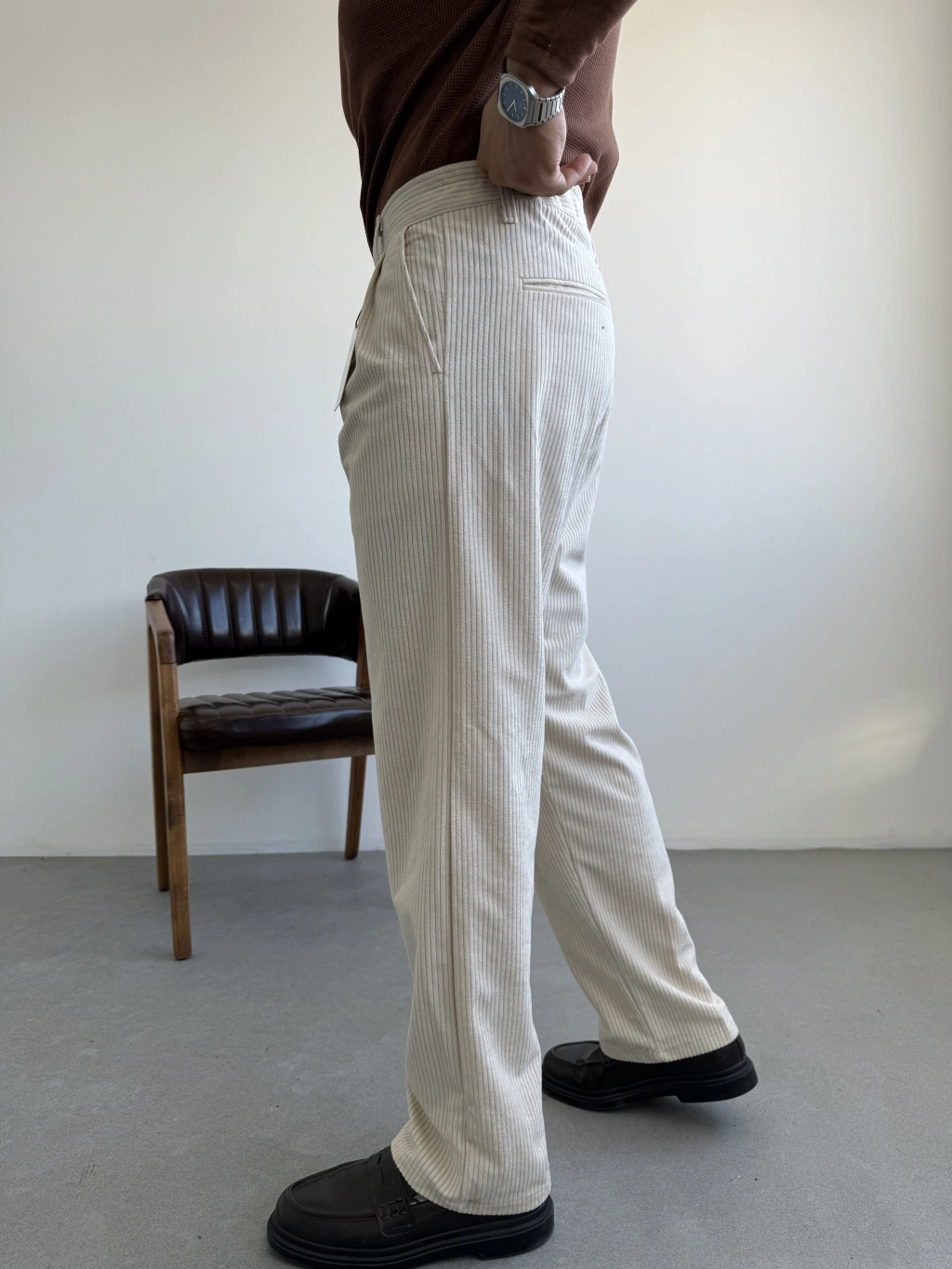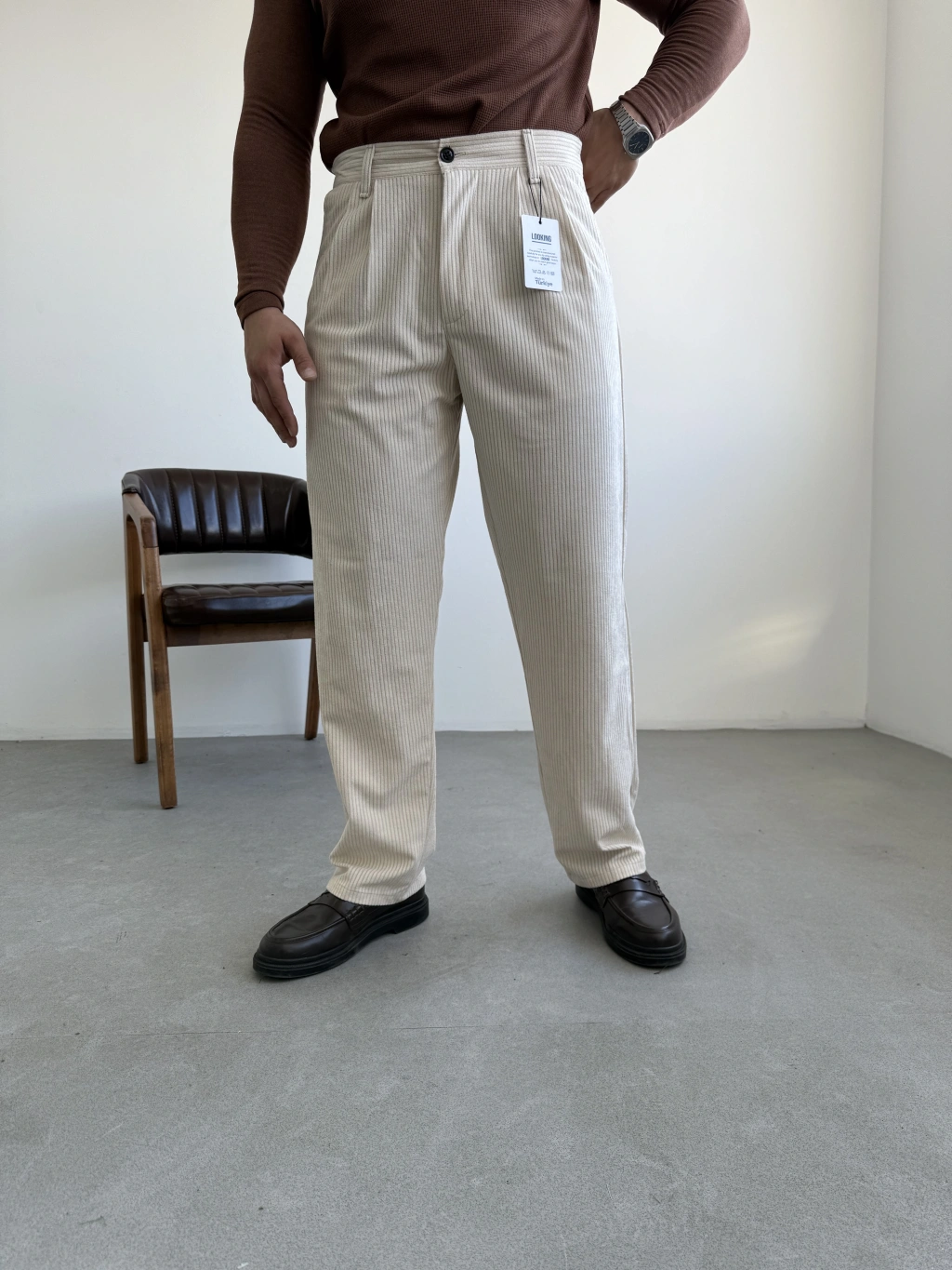 Kadife Kumaş Baggy Kalıp Pantolon Bej