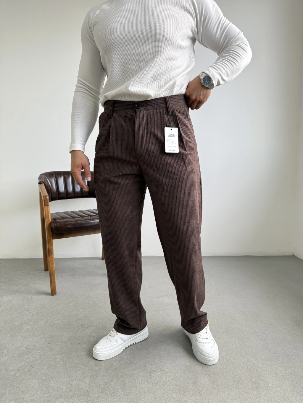 Kadife Kumaş Baggy Kalıp Pantolon Kahverengi