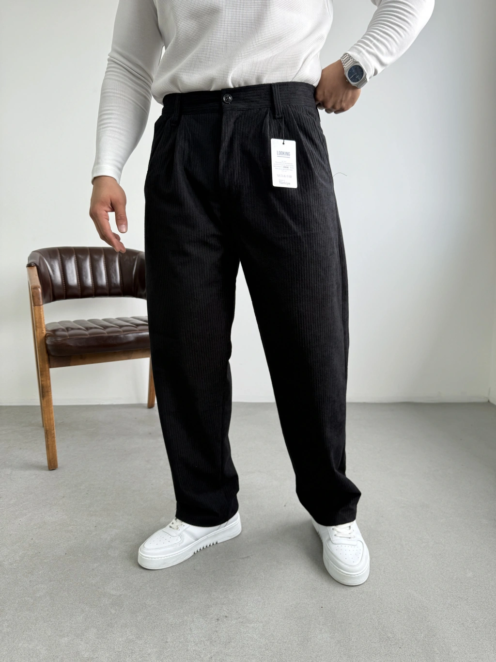 Kadife Kumaş Baggy Kalıp Pantolon Siyah