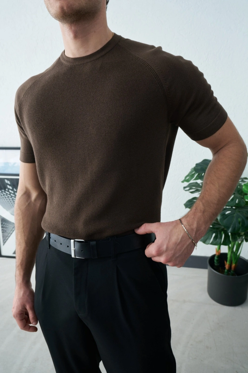 KAHVERENGİ REGLAN KOL PAMUK KUMAŞ TRİKO