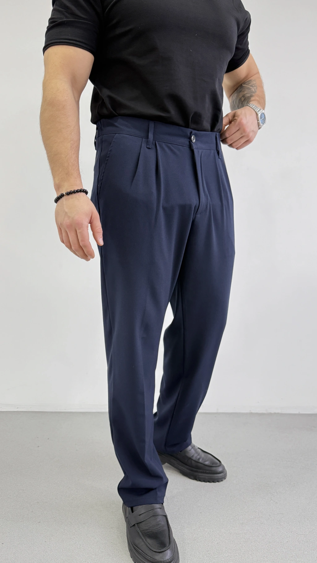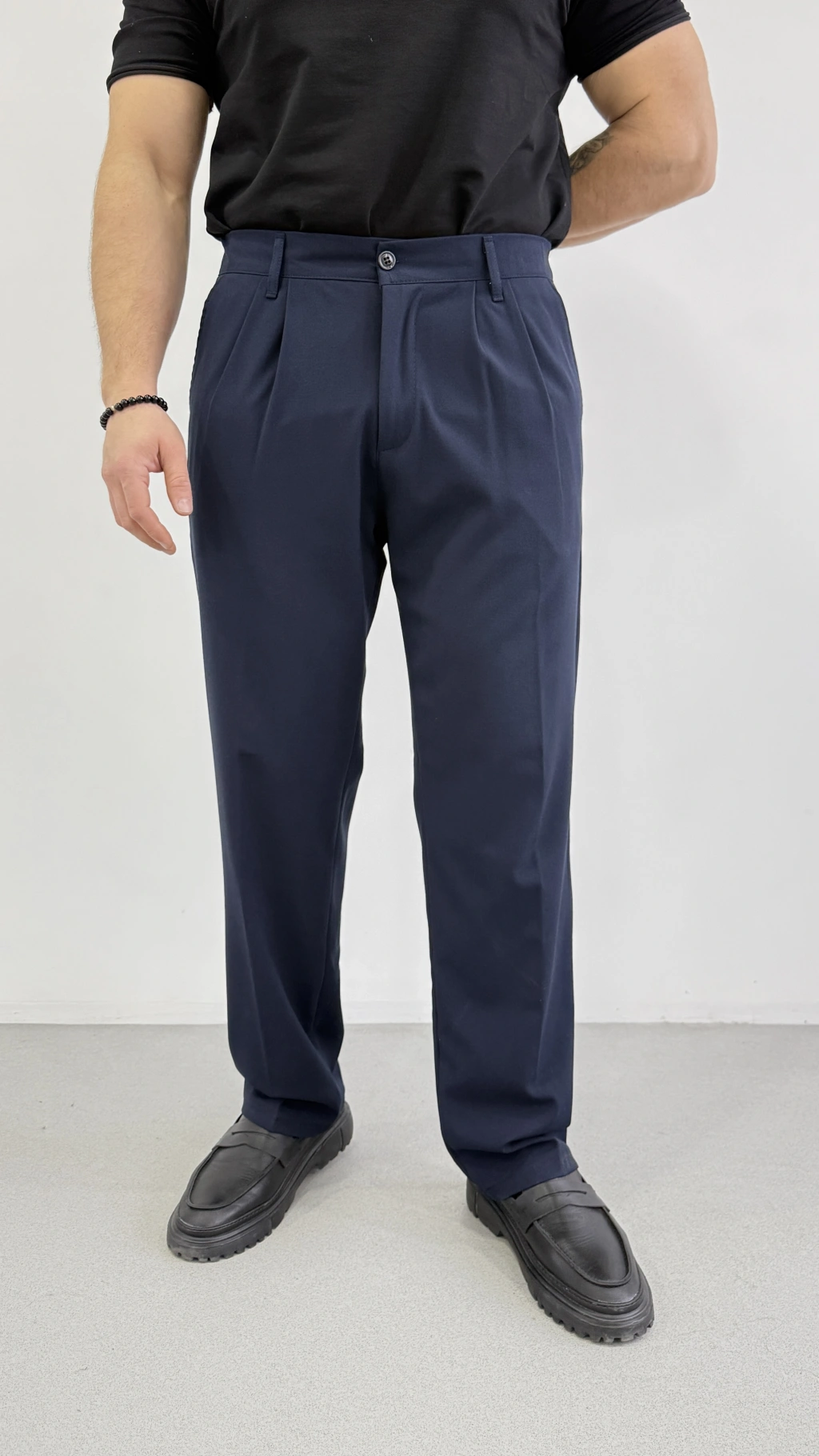 LACİVERT ÇİFT PİLELİ BAGGY KALIP KUMAŞ PANTOLON