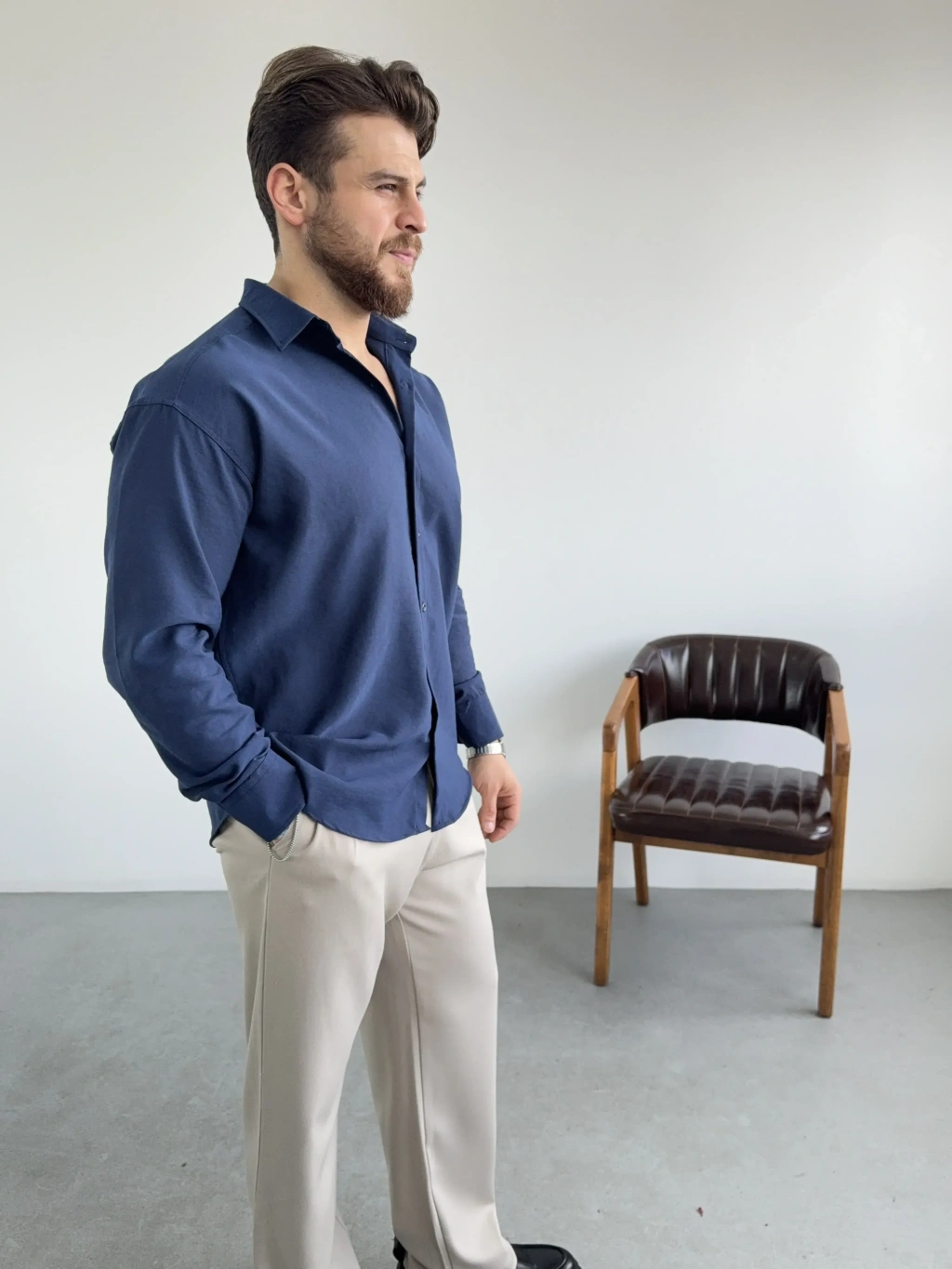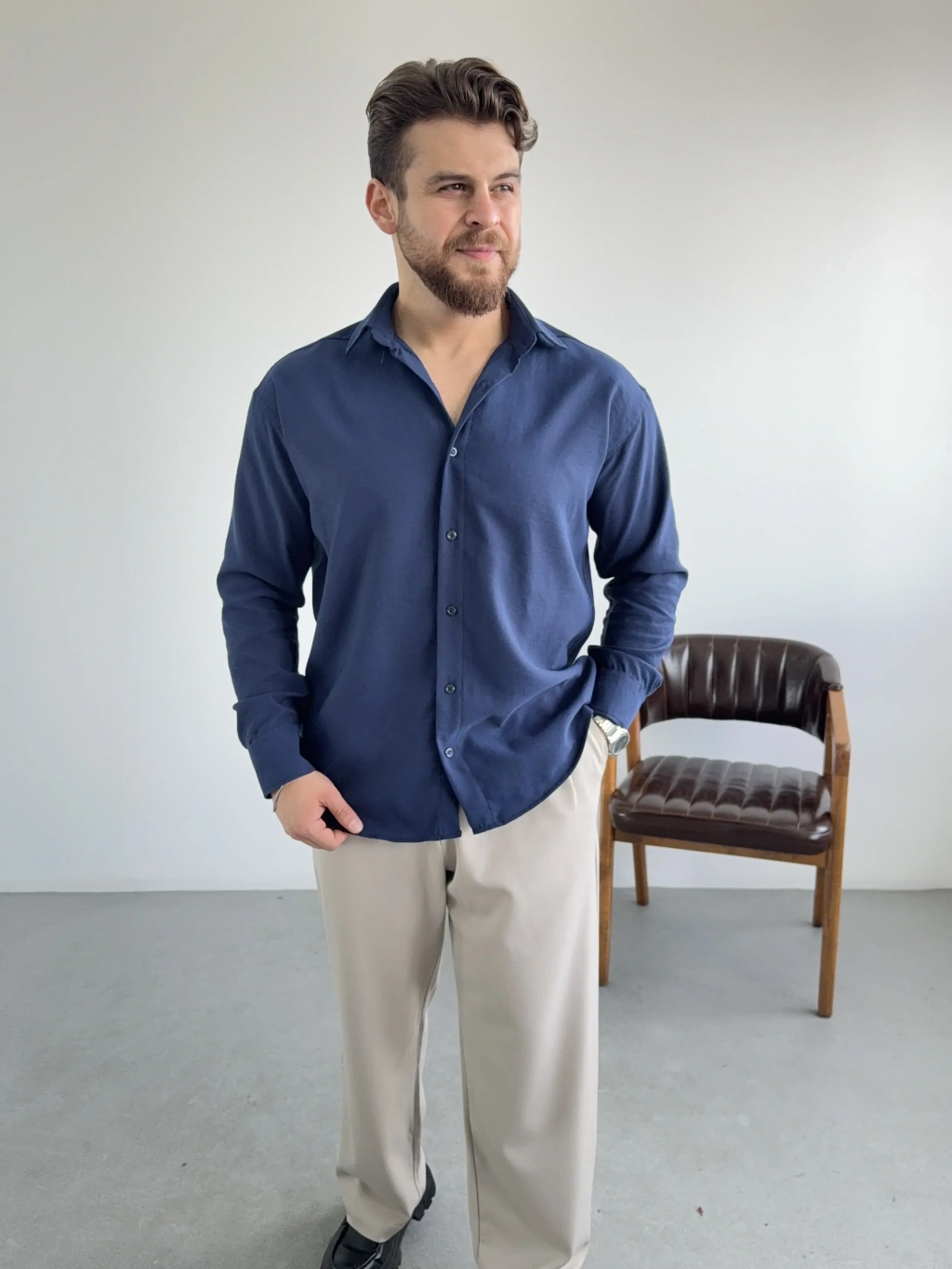 Lacivert Kışlık Modal Kumaş Gömlek