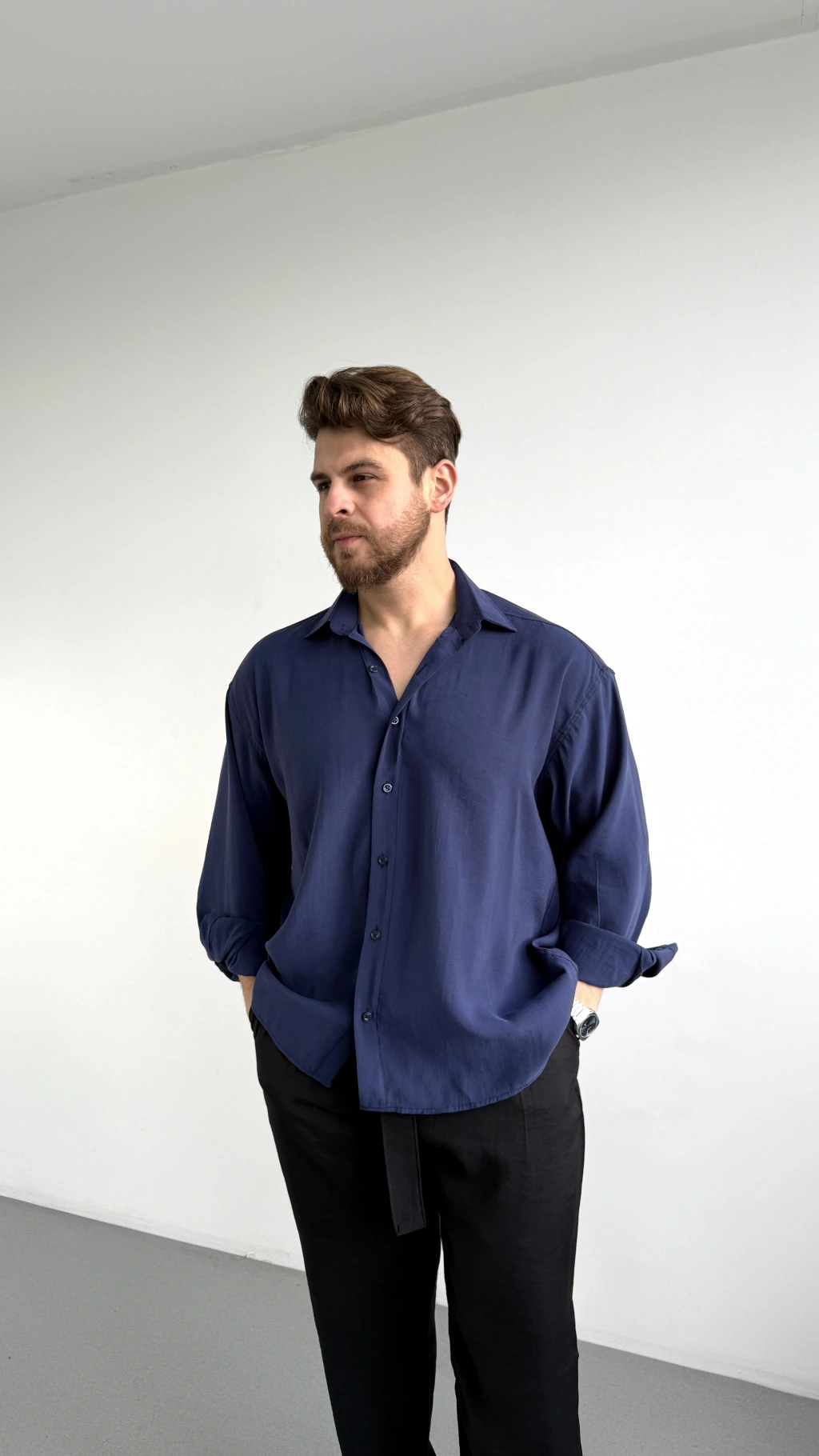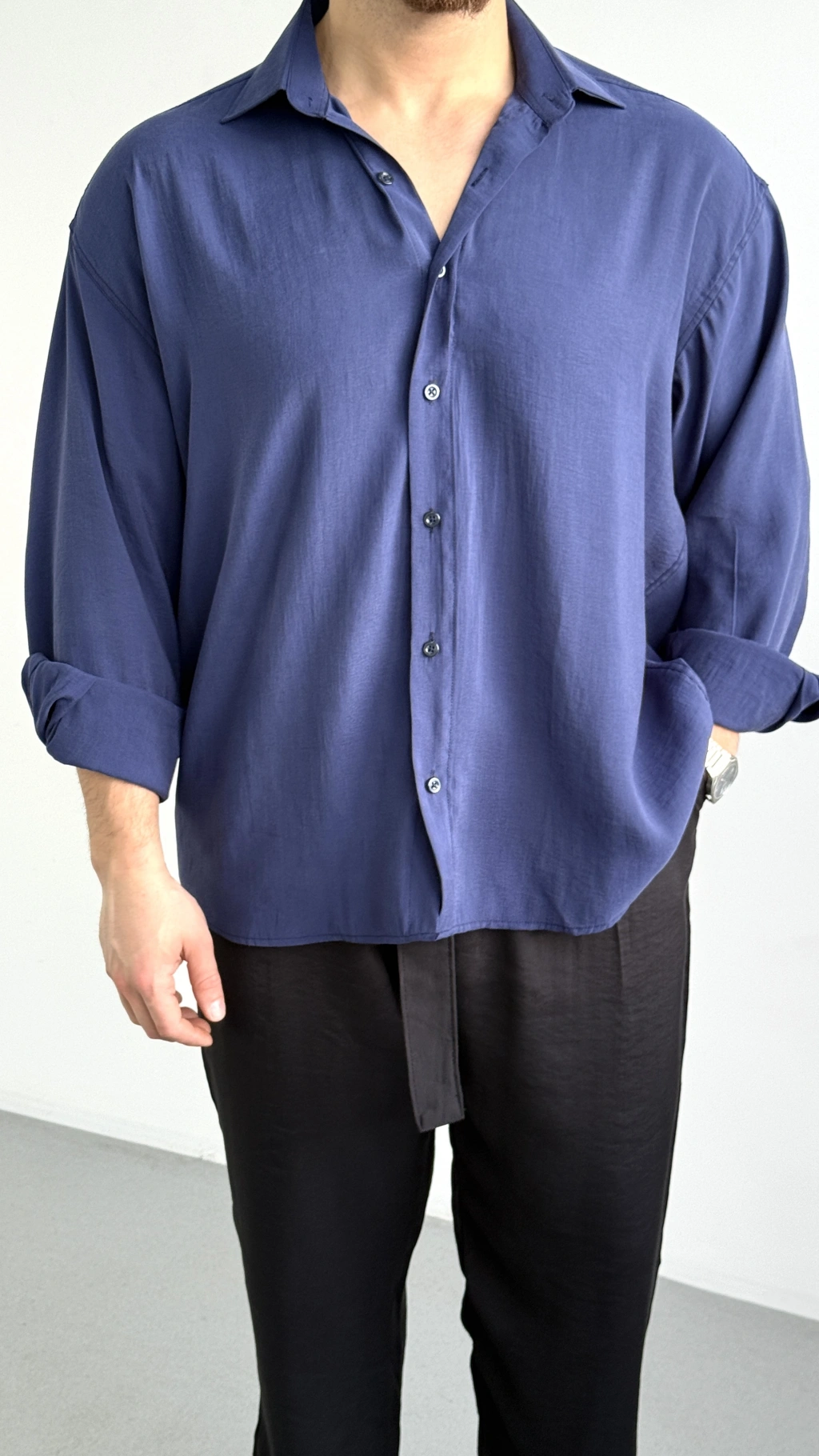LACİVERT MODAL KUMAŞ GÖMLEK
