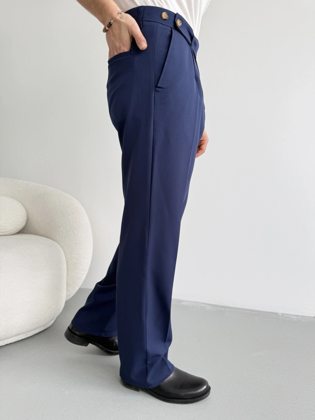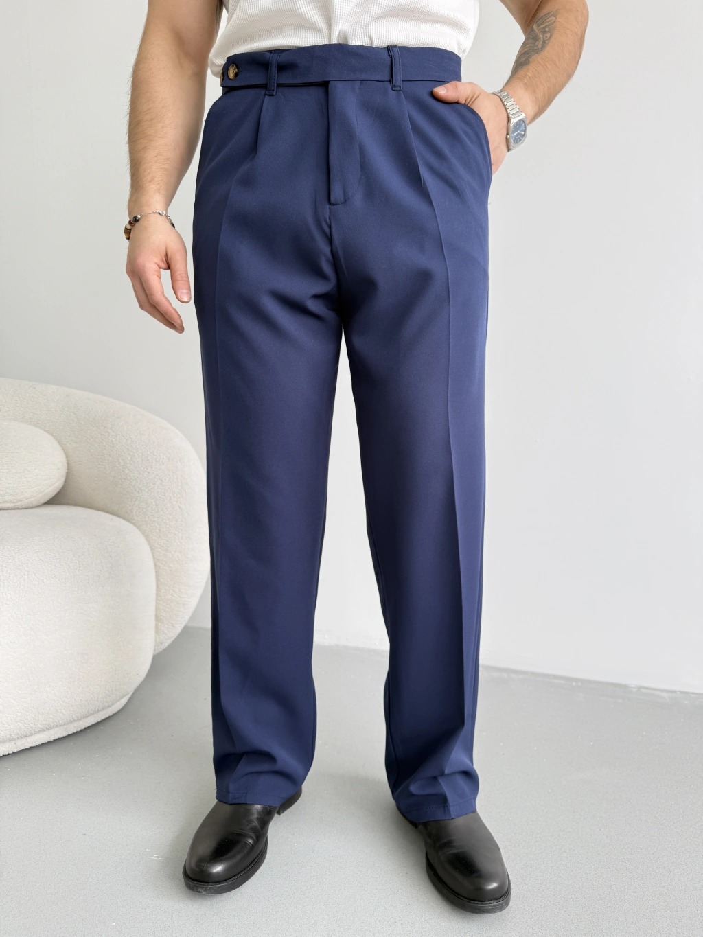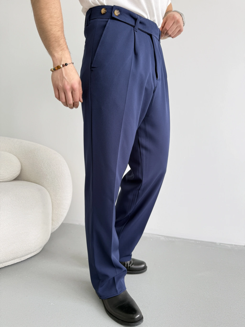LACİVERT UZUN KEMERLİ BAGGY KALIP KUMAŞ PANTOLON