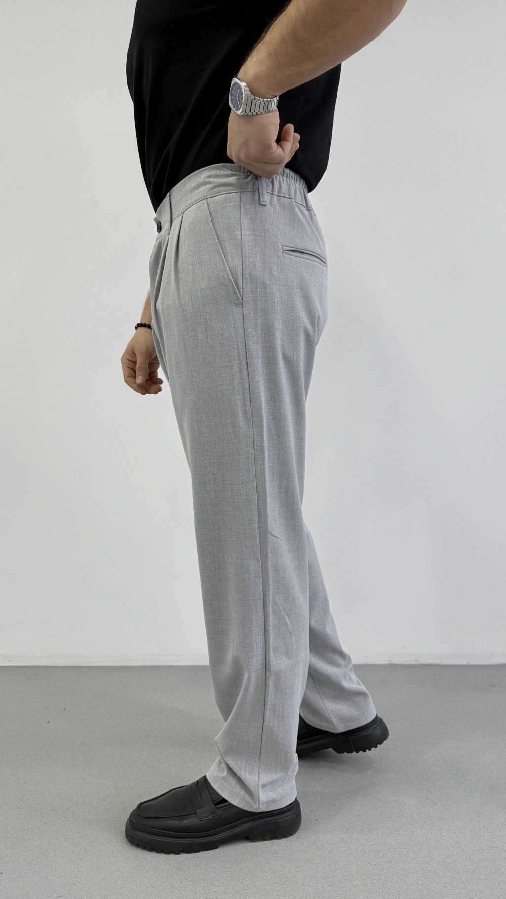 MELANJ GRİ ÇİFT PİLELİ BAGGY KALIP KUMAŞ PANTOLON