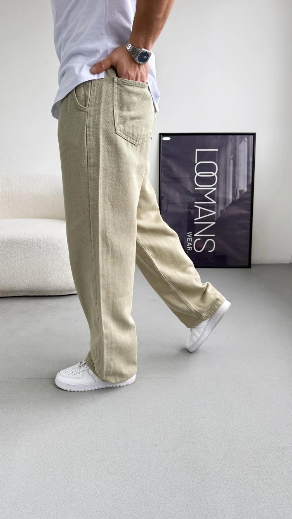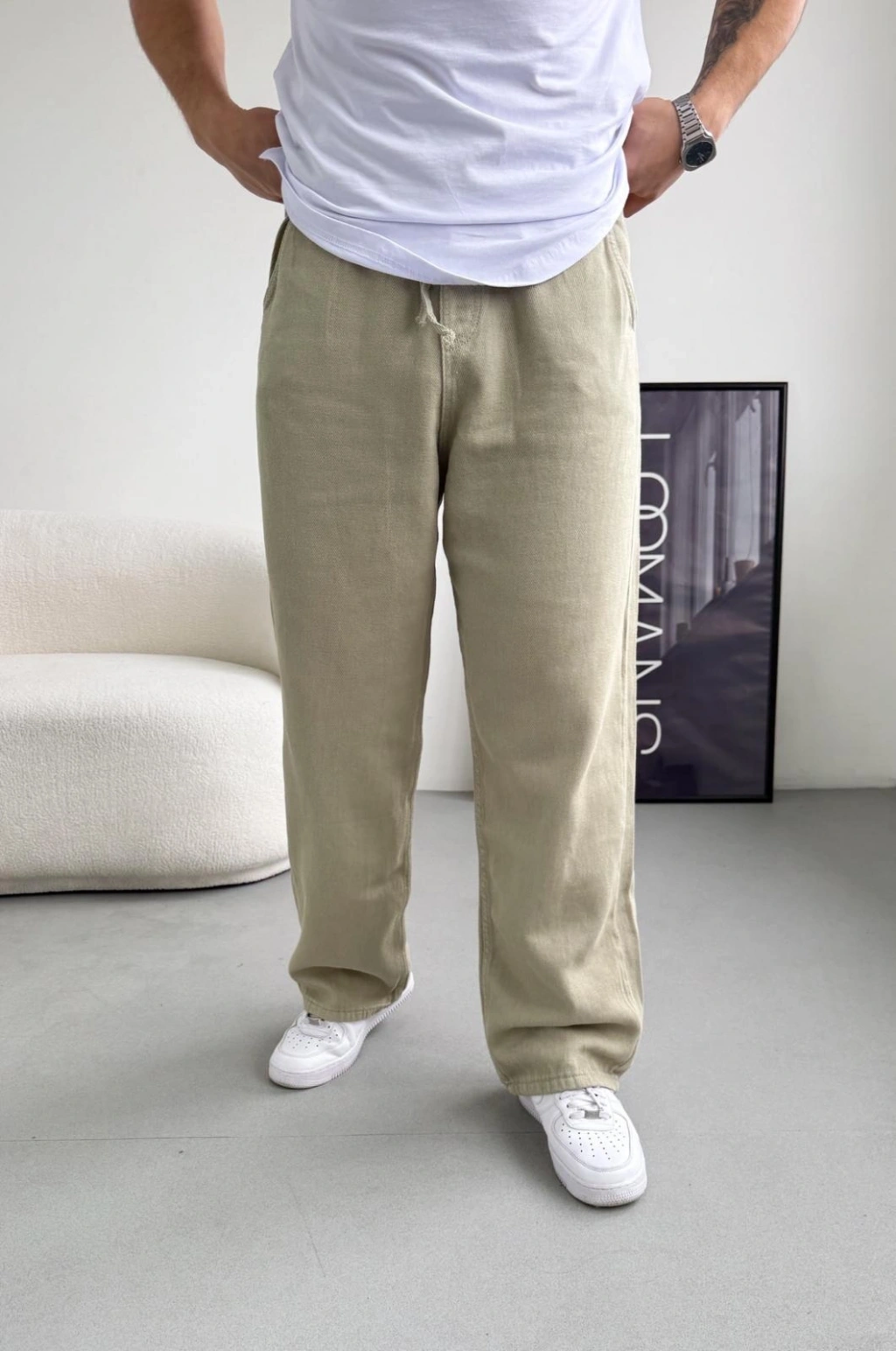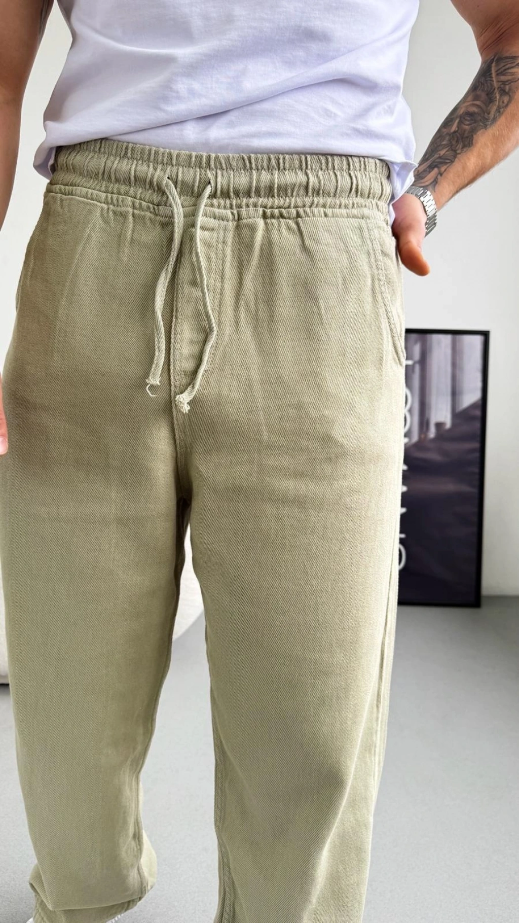 • Extra baggy kalıbıyla şıklığı ve rahatlığı bir araya getiren mint yeşili gabardin pantolon.