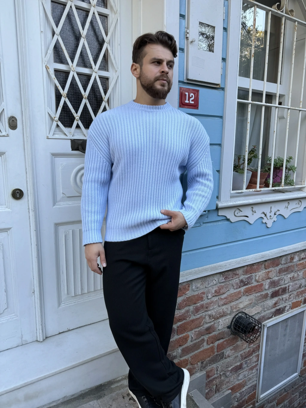 Oversize Kalıp Kalın Fitilli Kazak Bebe Mavi