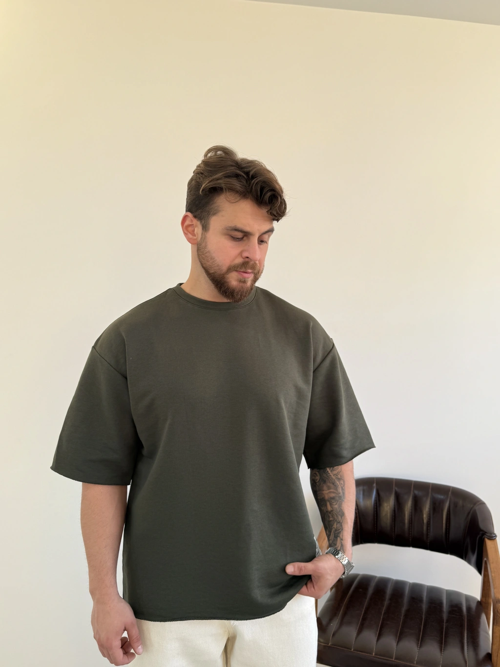 Pis Kesim Oversize Kalıp Tişört Haki Yeşil
