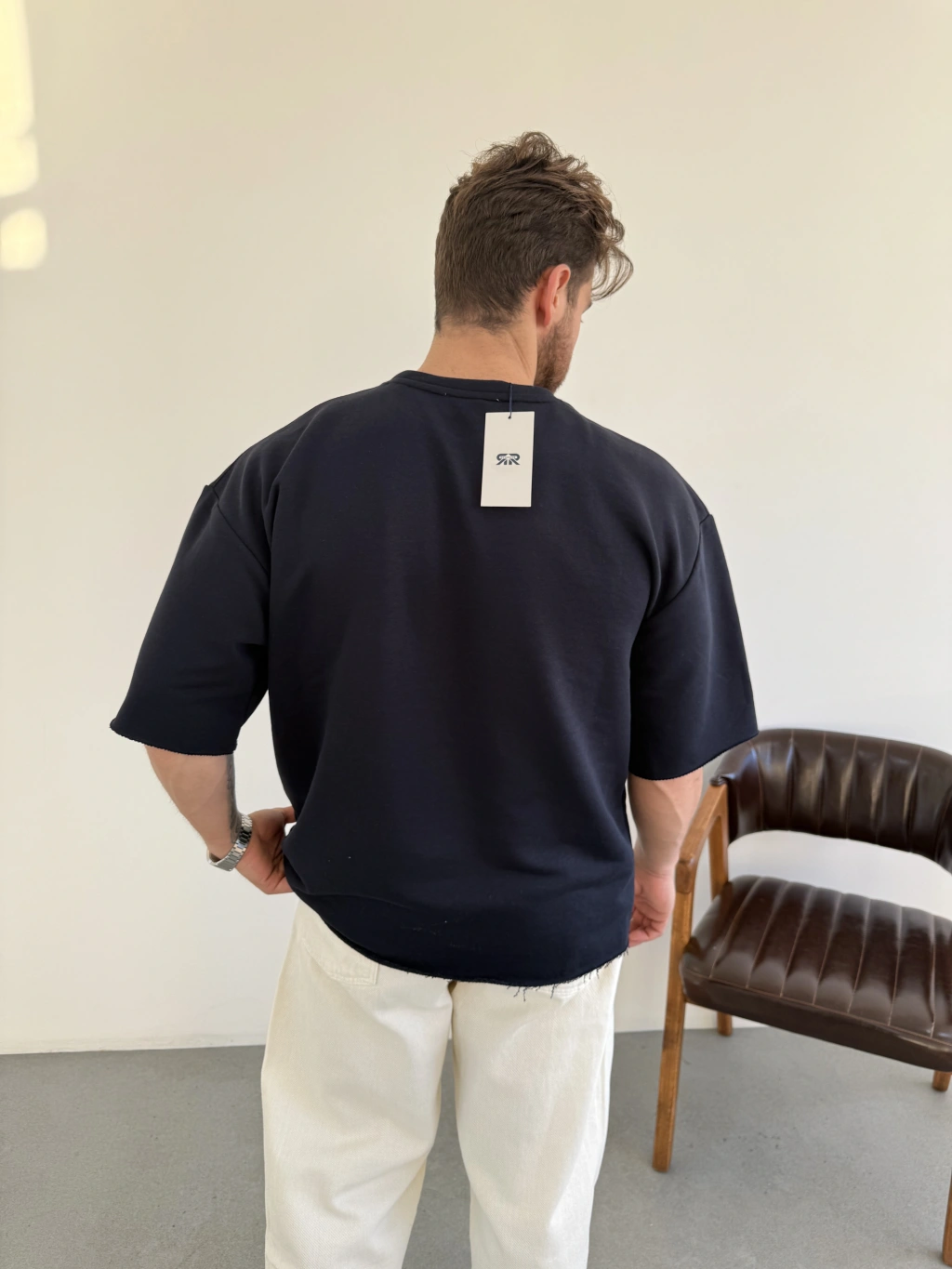 Pis Kesim Oversize Kalıp Tişört Lacivert