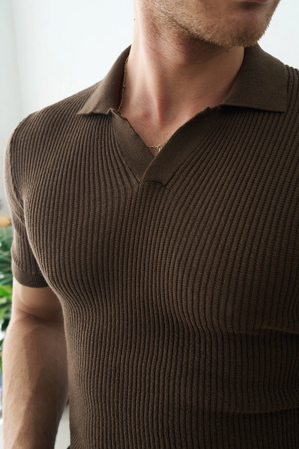 POLO YAKA ÖRME TRİKO KAHVERENGİ