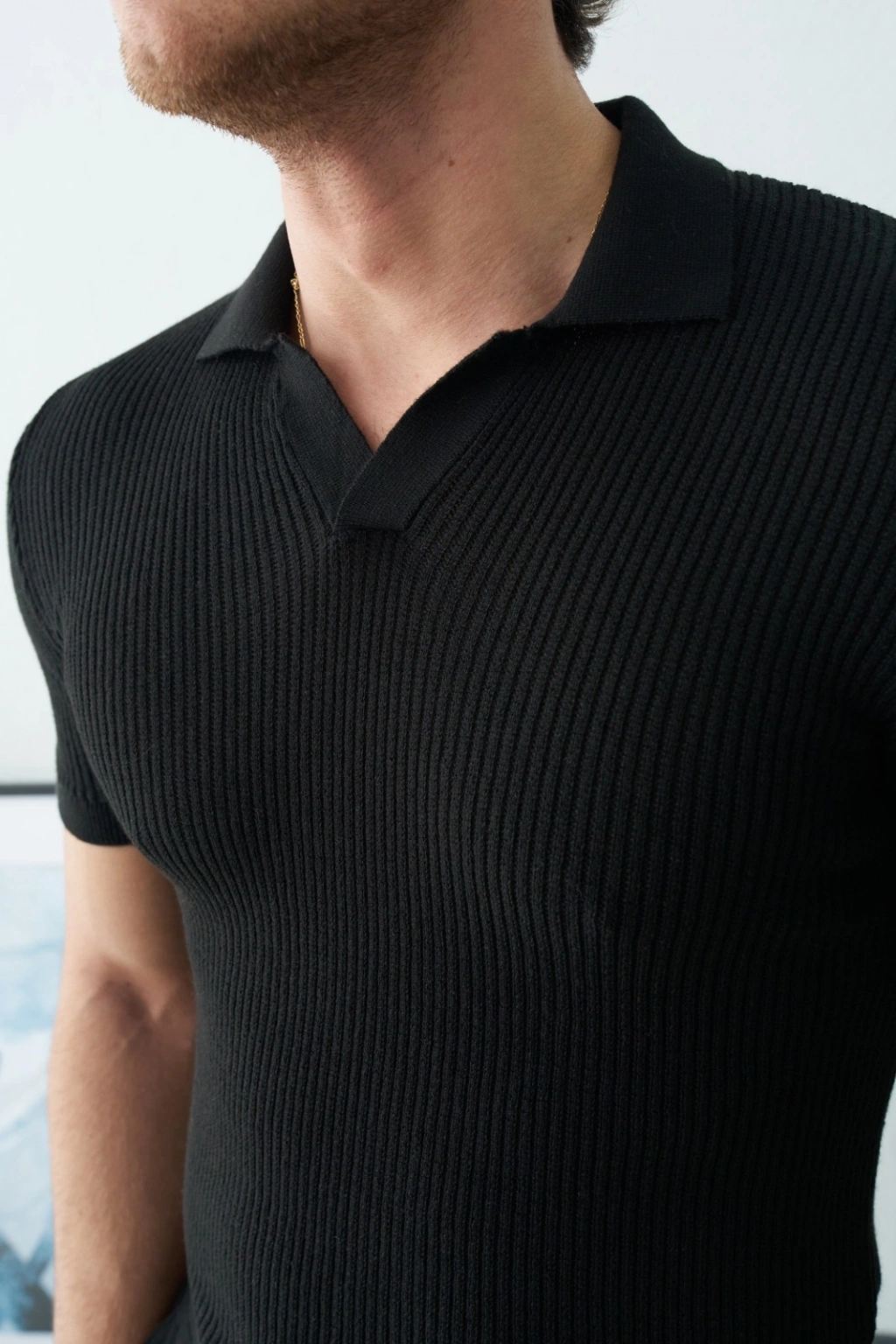 POLO YAKA ÖRME TRİKO SİYAH