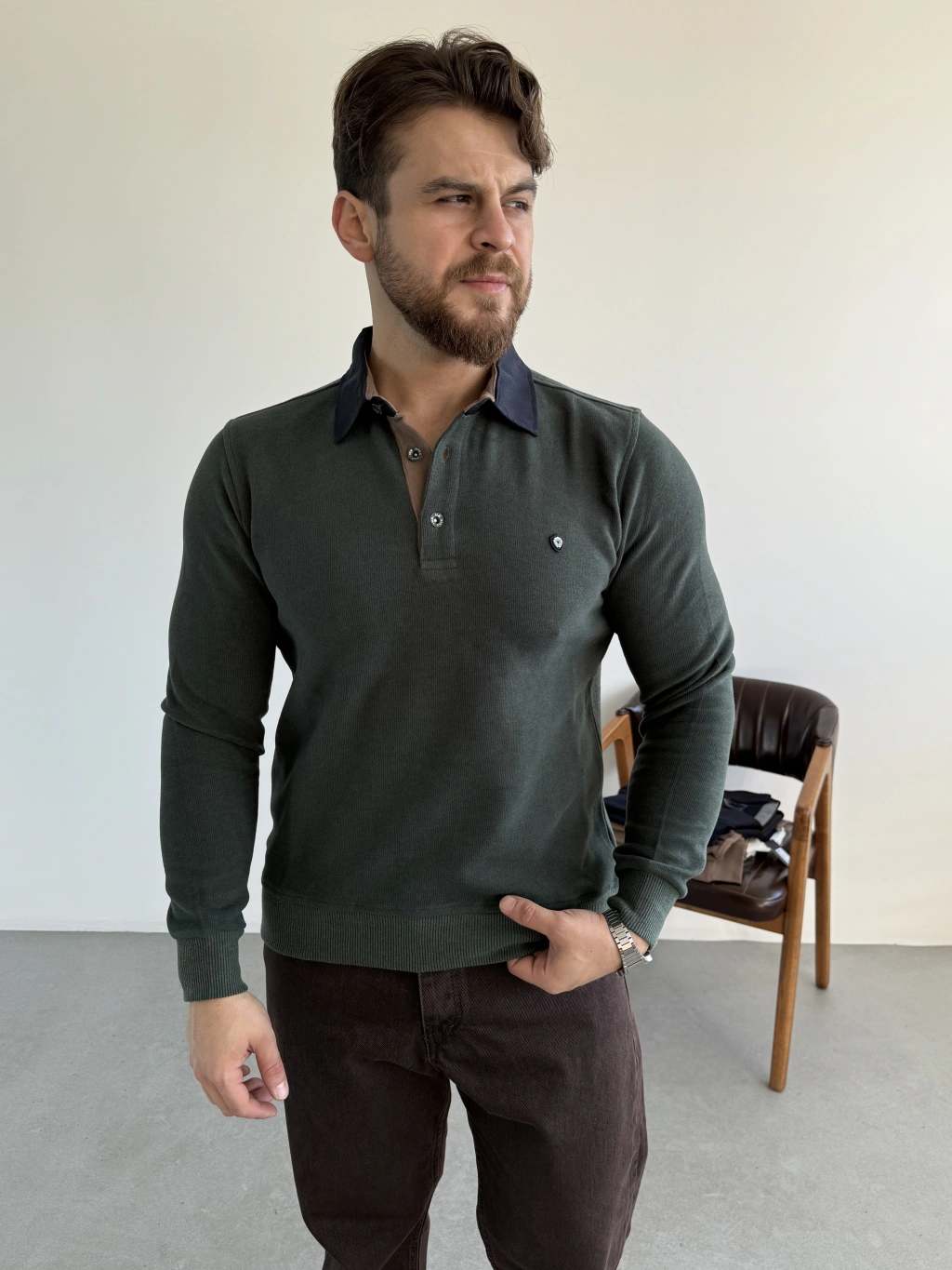 Selanik Örme Gömlek Yaka Sweat Nefti Yeşil
