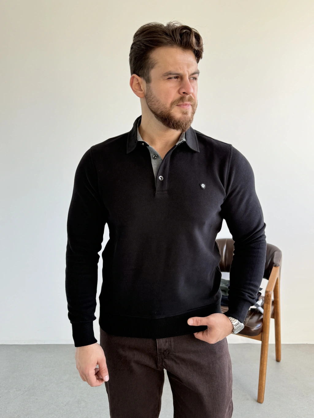 Selanik Örme Gömlek Yaka Sweat Siyah