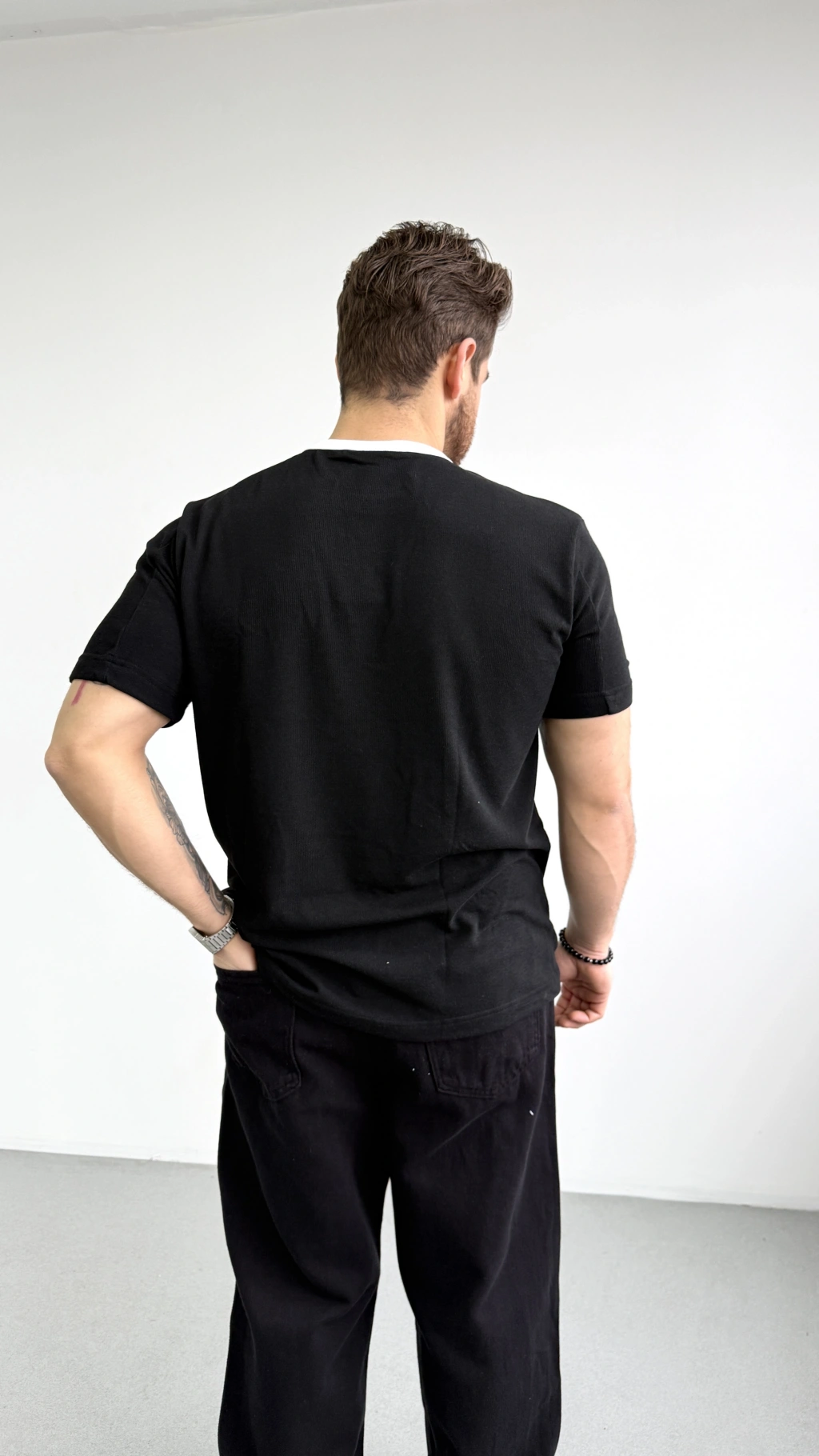 SİYAH HAVLU KUMAŞ 90'S REGULER KALIP TİŞÖRT