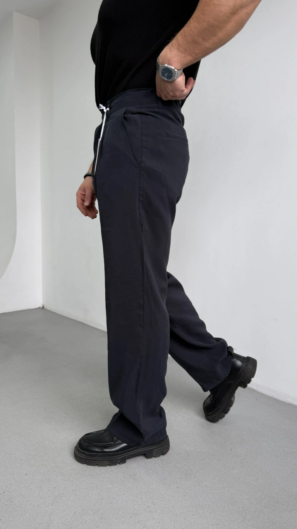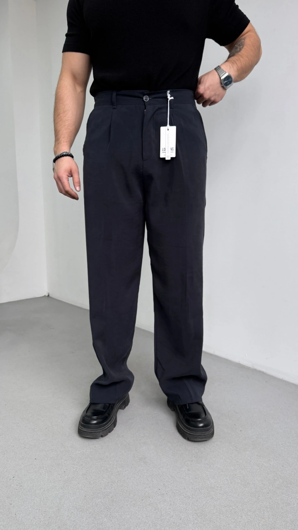 SİYAH MODAL KUMAŞ TEK PİLELİ BAGGY KALIP PANTOLON