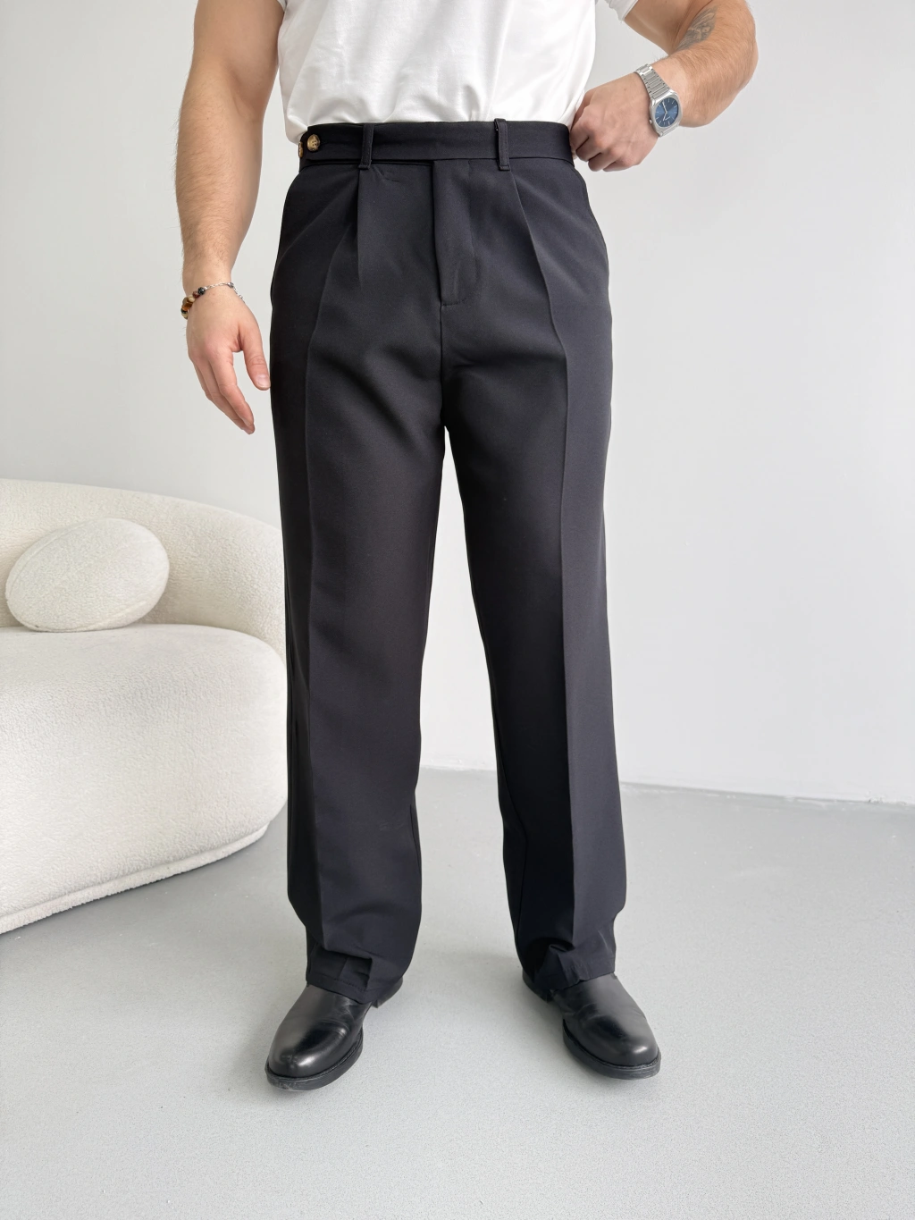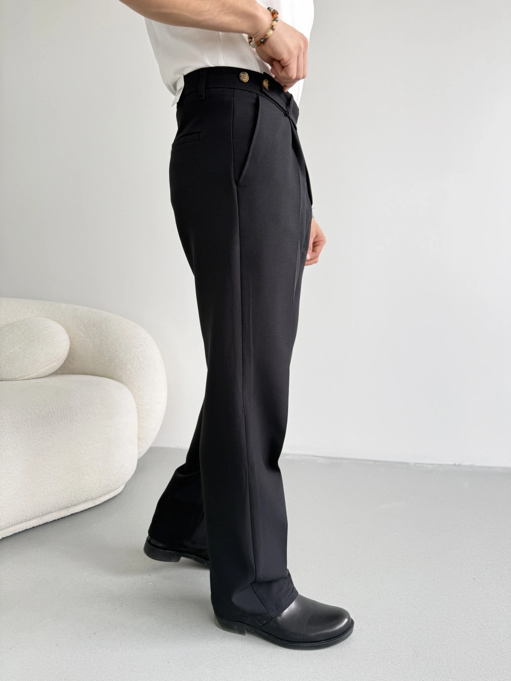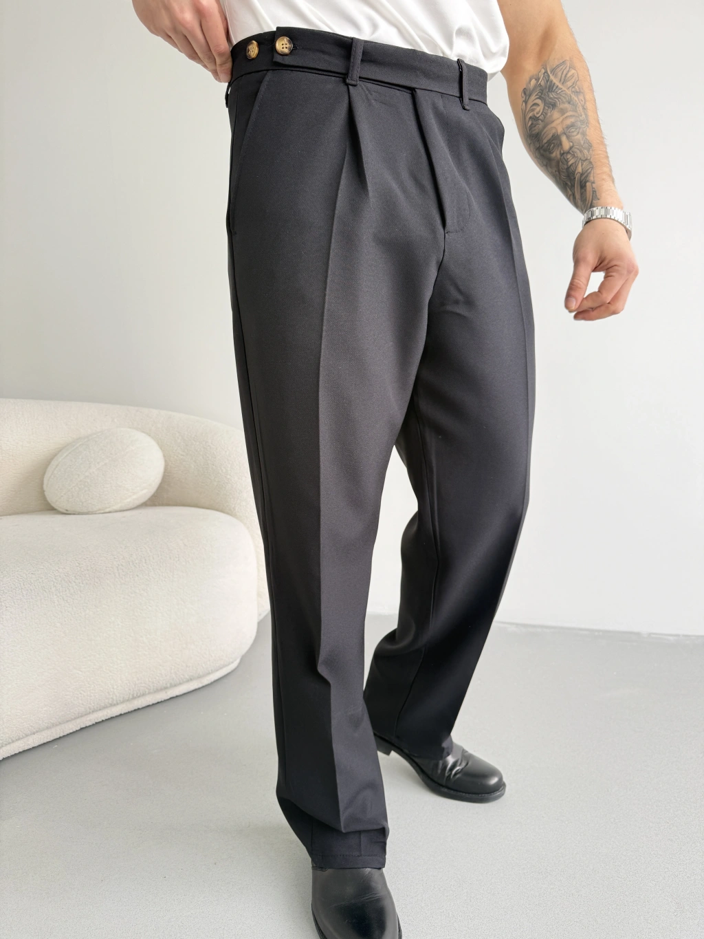 SİYAH UZUN KEMERLİ BAGGY KALIP KUMAŞ PANTOLON