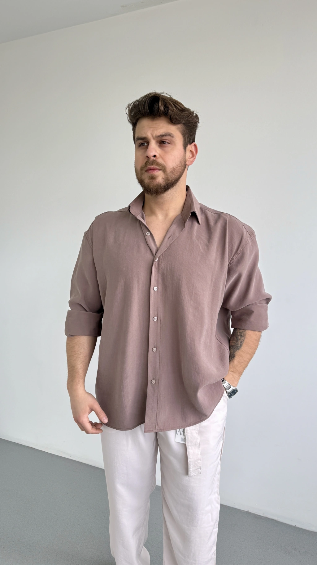 SÜTLÜ KAHVE MODAL KUMAŞ GÖMLEK