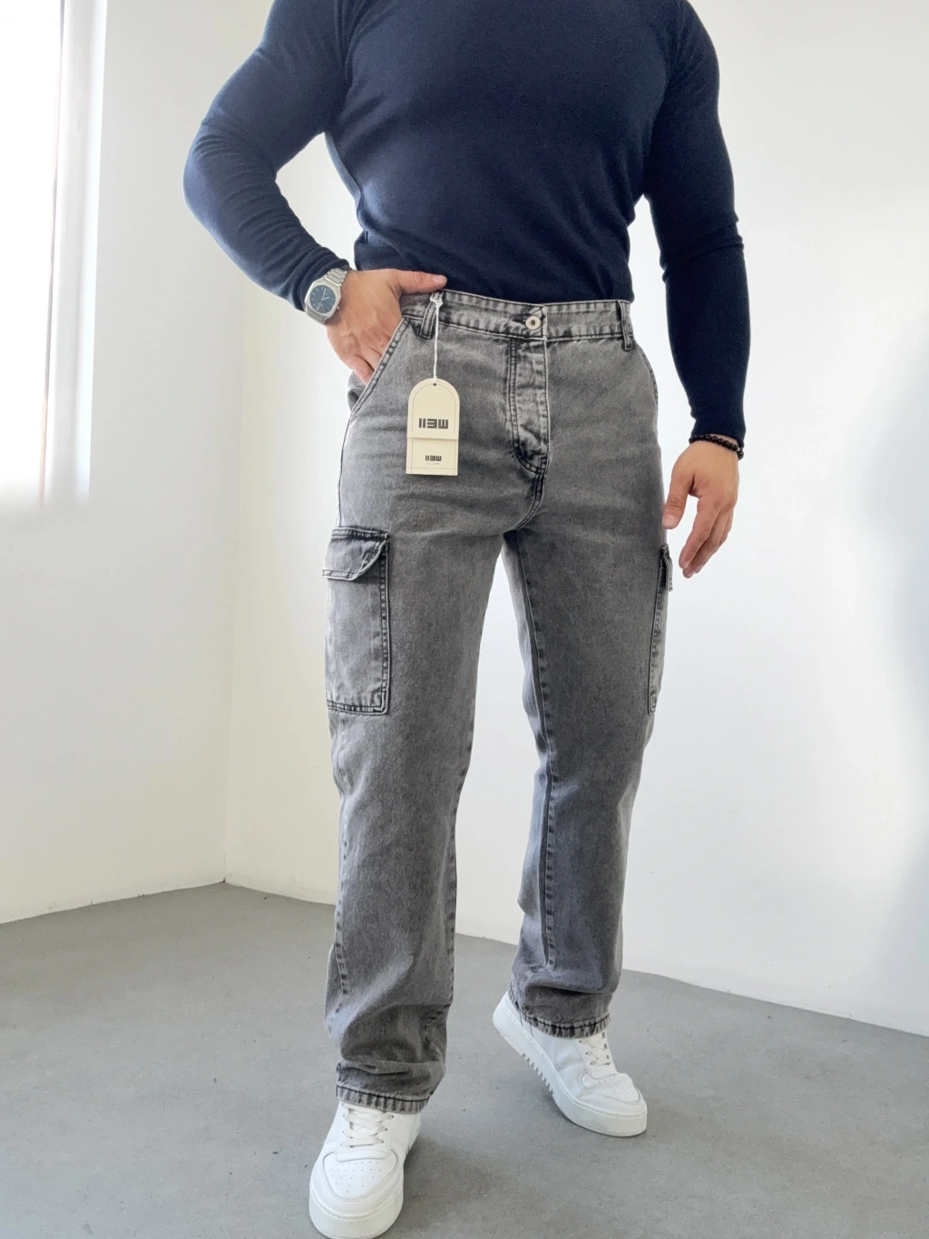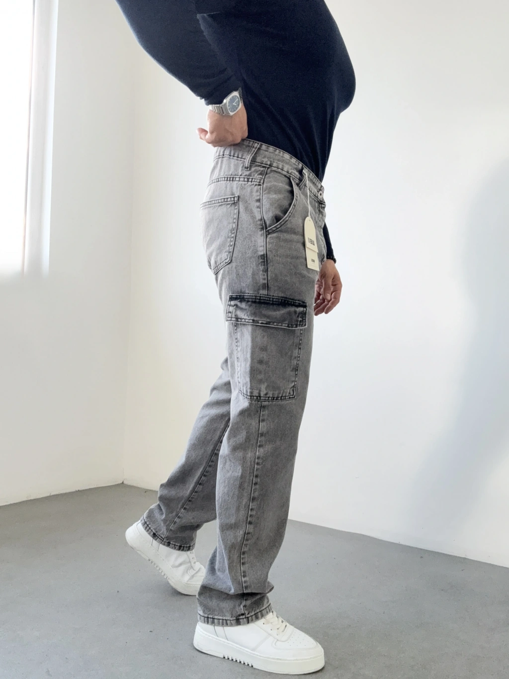 Yıkamalı Gri Kargo Cep Kot Pantolon